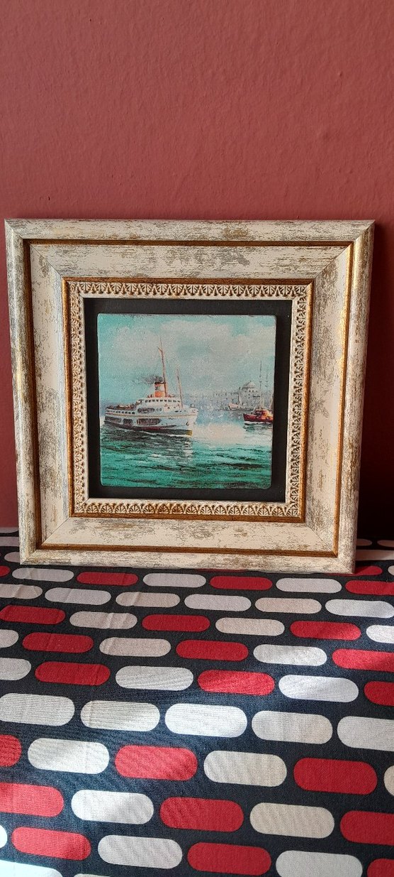 İstanbul manzaralı eskitme ahşap çerçeveli tablolar 20x20 cm.