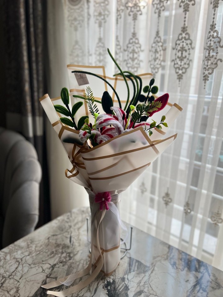 ✨ El emeğiyle hazırlanan özel buket ✨ Beyazın saflığı, fuşyanın enerjisi ve yeşilin tazeliği tek bukette buluştu Solmayan yapısıyla uzun süre hatıra olarak saklanır, bulunduğu ortama şıklık katar. Doğum günü Söz – nişan – özel gün Sevdiklerinize anlamlı bir sürpriz Her biri özenle ve tek tek elde yapılmıştır. Hediye etmeye hazır şekilde gönderilir.