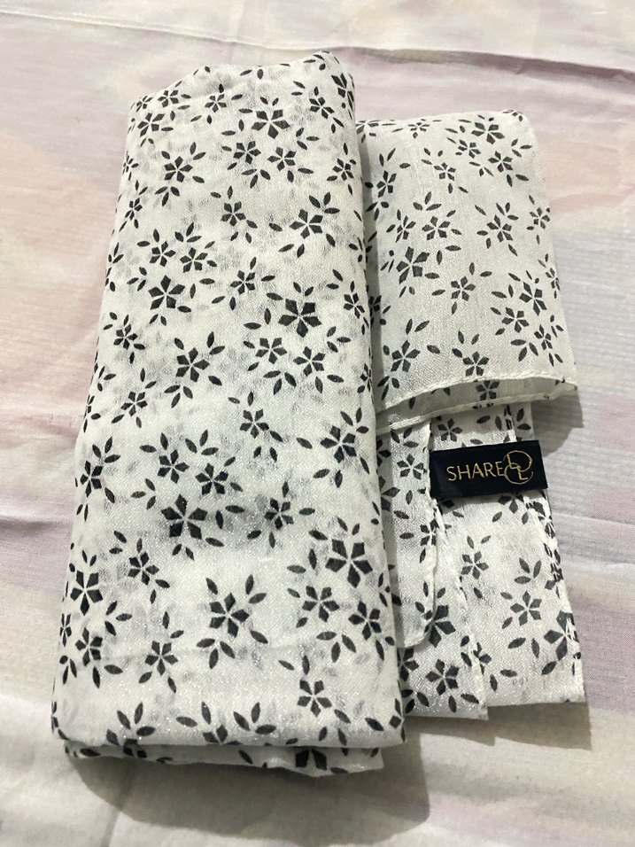 Share markasına ait beyaz zemin üzerine siyah çiçek desenli, ince dokulu bir şal. Hafif ve yumuşak yapısıyla günlük kullanım için idealdir. Deseni zarif ve sade bir hava katar; açık renk sevenler için şık ve kullanışlı bir tercih.