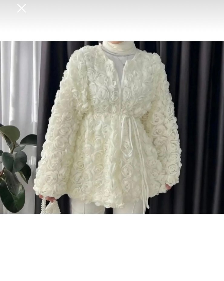 Beyaz Çiçek Desenli Midi Kadın Kaban
