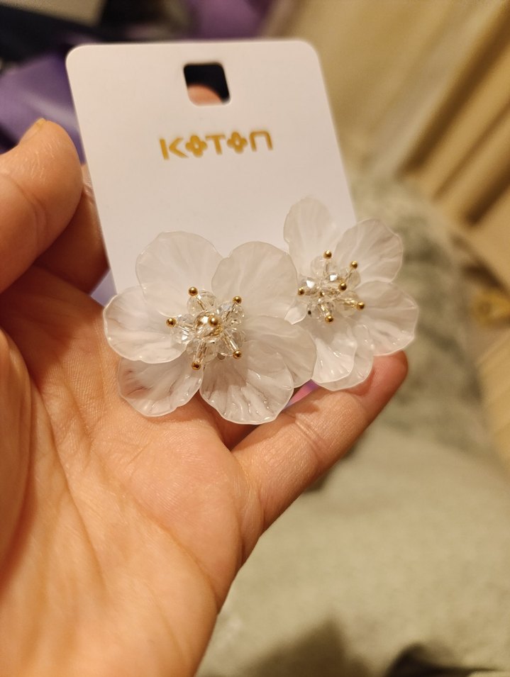 Düğün ve minimalist tarzlara uygun, beyaz ve çiçek desenli bohem midi küpe.