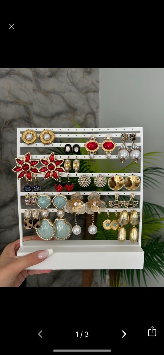 Beyaz Çiçek Desenli Mini Boncuklu Küpeler