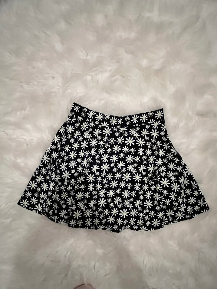 Beyaz Çiçek Desenli Mini Etek