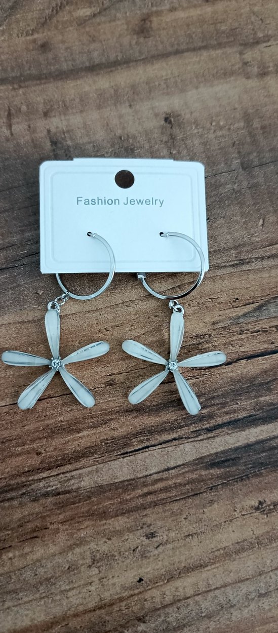 Beyaz çiçek desenli, kısa püsküllü minimalist bohem tarzda günlük kullanıma uygun küpe. Çeliktir kararma yapmaz.