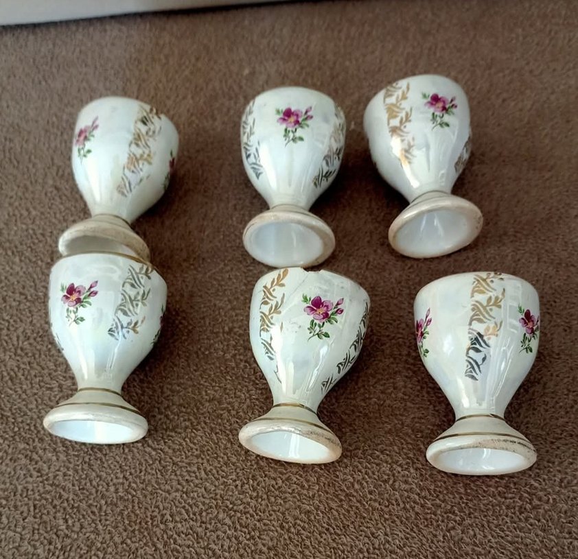 Beyaz Çiçek Desenli Porselen Kadehler