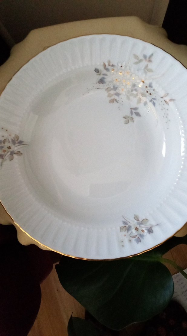 Altın detaylı, zarif çiçek desenli beyaz porselen tabak. Üzerinde "A" harfi bulunur. ️