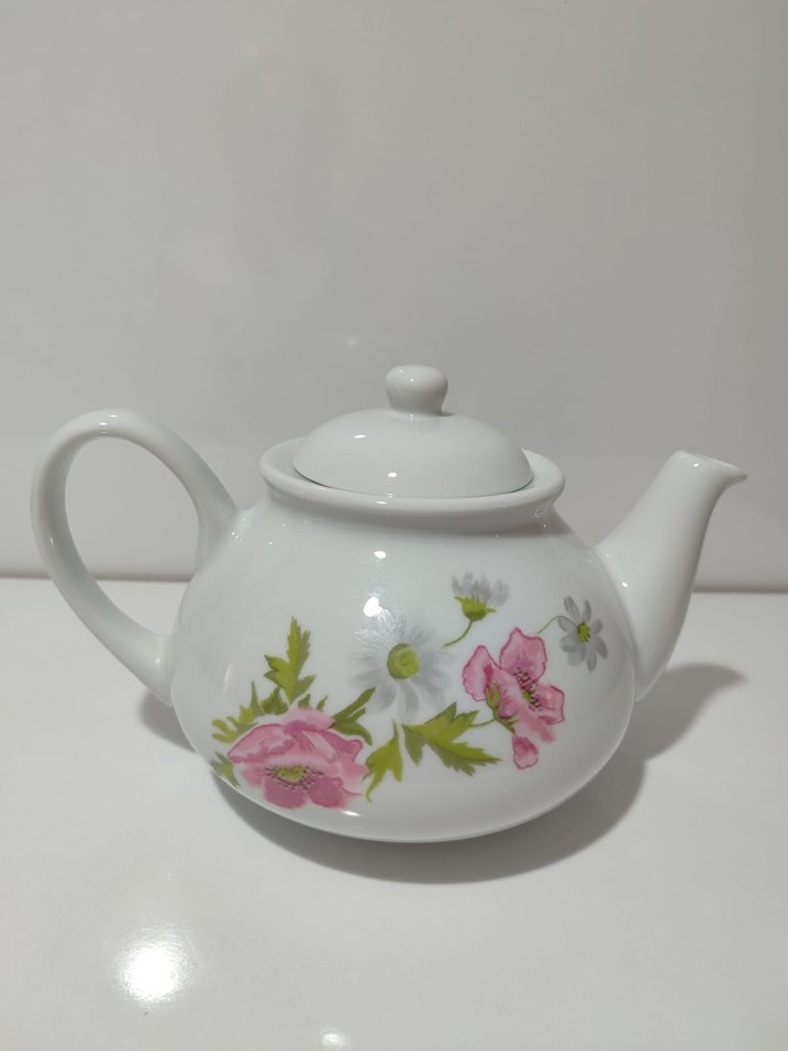 Beyaz Çiçek Desenli Seramik Demlik