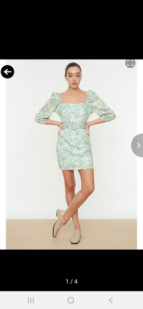 Straplez yaka, kemerli, beyaz çiçek desenli turkuaz mini elbise. Yumuşak sentetik kumaştan, ince askılı kollu, şık ve rahat bir görünüm sunar.