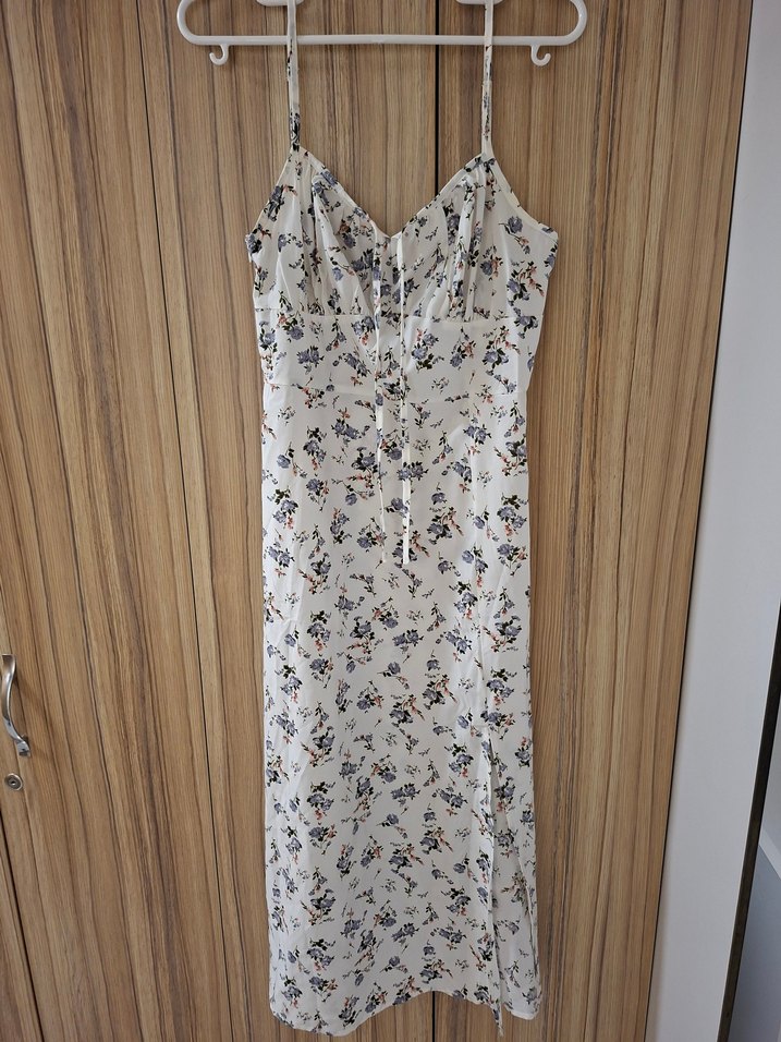 beyaz Çiçek Desenli Uzun Askılı Elbise Shein