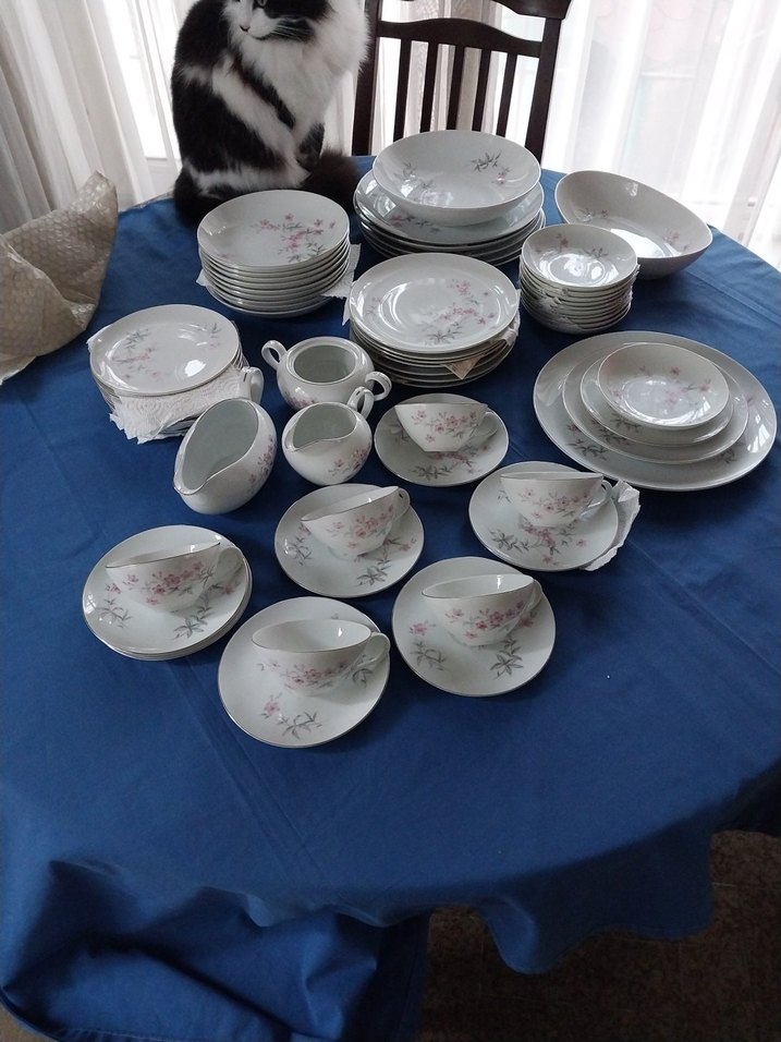 Japon porselen 60parca Yamato Marietta,eski antika yemek takım 1950 yıllarında üretilmiştir, ince porselen, narin çicek desenler ve kenarlarıyla gümüs renk yaldızlı. ürün kulanmış mı bilmiyorum çizik yok bazen atık var (görselde) o da eve taşarken oldu. #yamato# marietta#