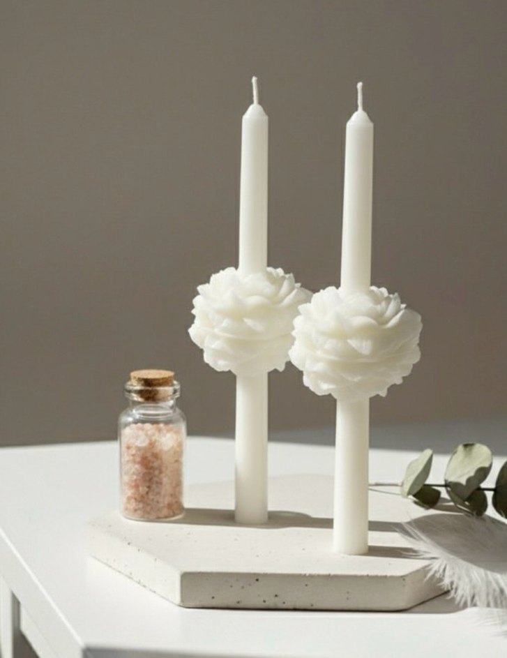 Beyaz Çiçek Detaylı Mum Seti