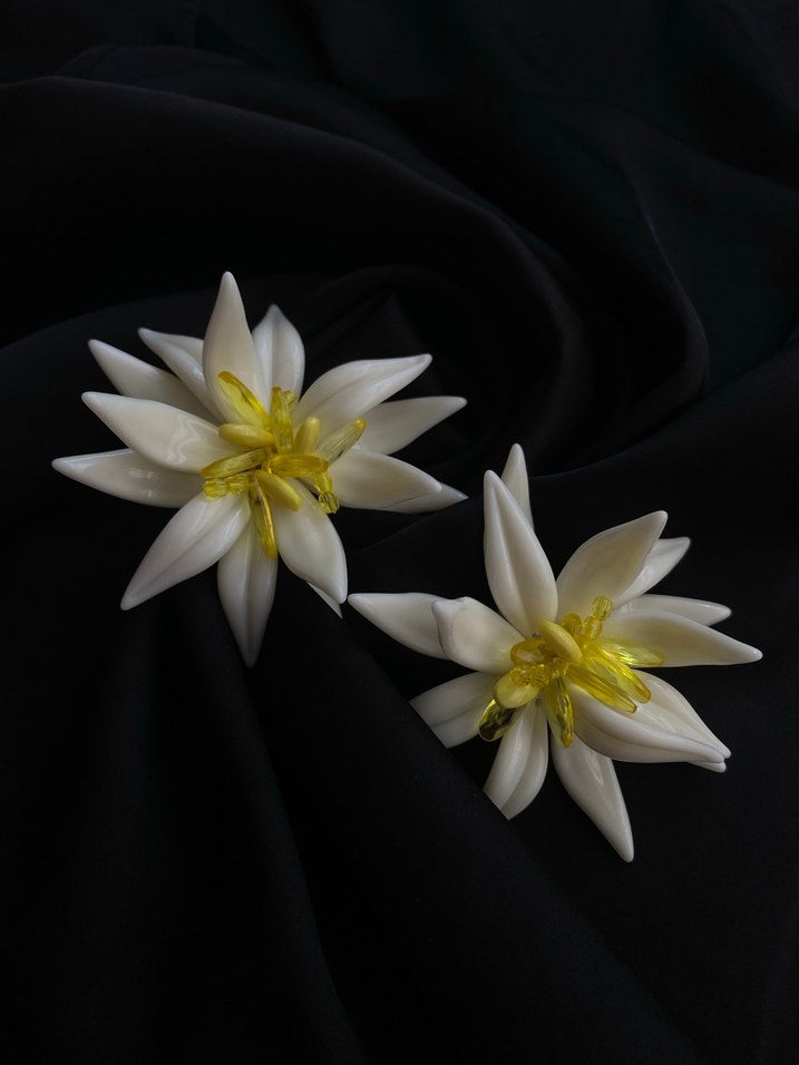 Beyaz çiçek desenli küpeler, sade tasarımı ve hafif gotik dokunuşuyla romantik akşamlar için uygundur.