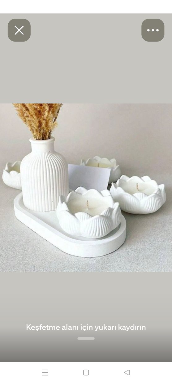 Beyaz çiçek şeklinde mumlar, tepsi ve vazo ile birlikte, sakin bir atmosfer yaratmak için uygundur.