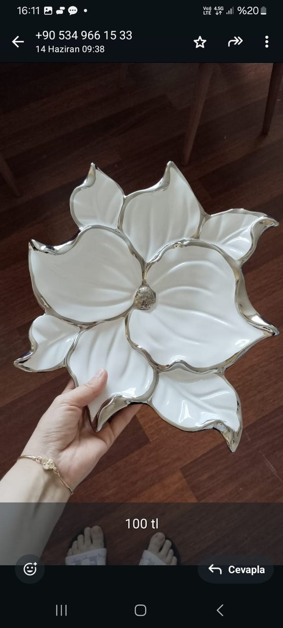 Beyaz Çiçek Tasarımlı sunum tabagi
