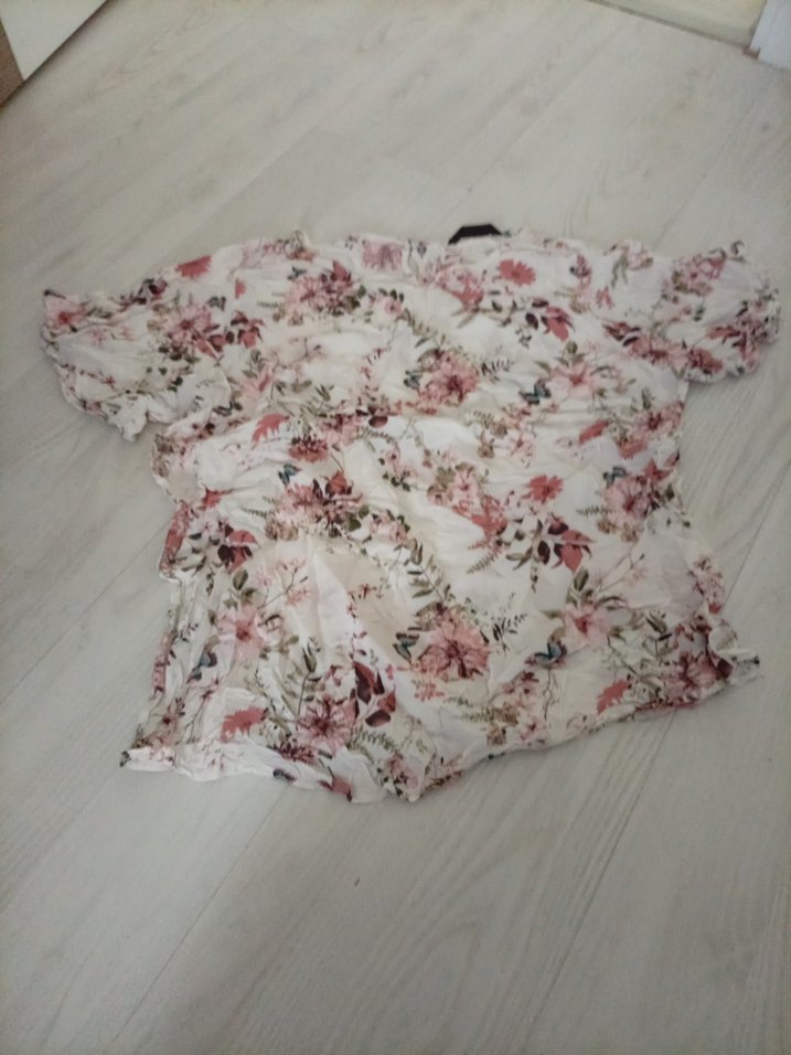 Beyaz, kısa kollu, , mini boy, çiçek desenli tarzda rahat kesim kadın bluz.