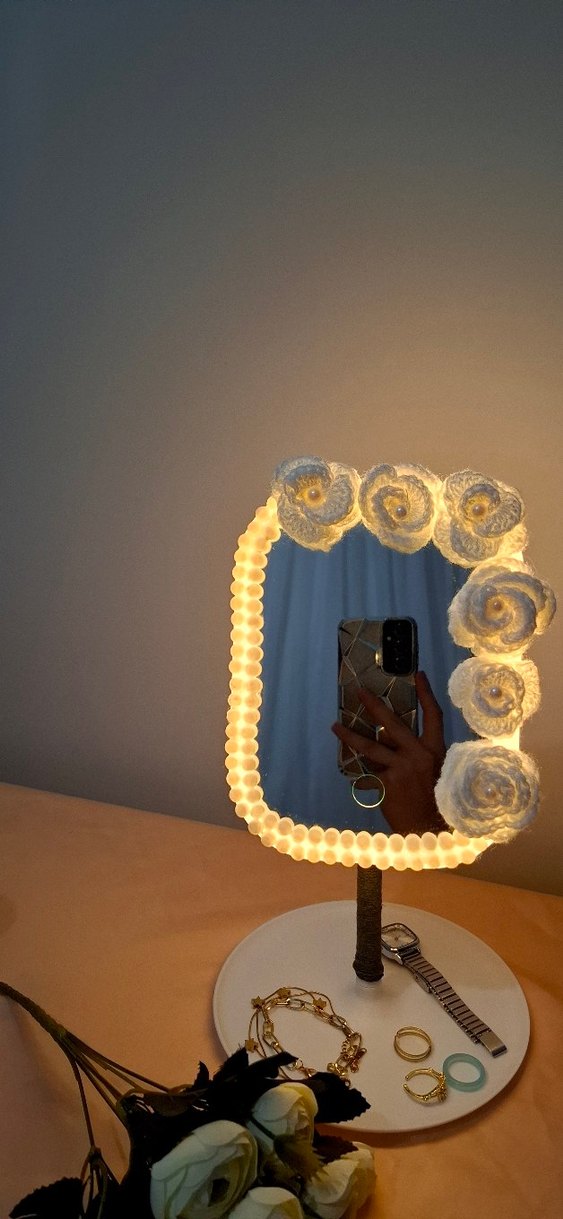 Beyaz Çiçekli Işıklı Masa Aynası