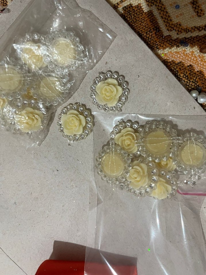 Parlak kenarlı beyaz çiçek şeklinde tırnak süsleri, tırnaklarınıza zarif bir dokunuş katmak için ideal.