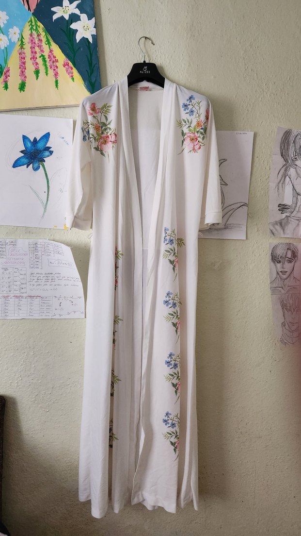 Vitange sabahlik, transparan degil, iki kol arası 48 cm, boy 135 cm kol 25 cm. kapali Çarşı ürünü. kameri yok ama kamer yeri var,uzun zaman severek kullanıldı. bu durum fiyata yansımıştır