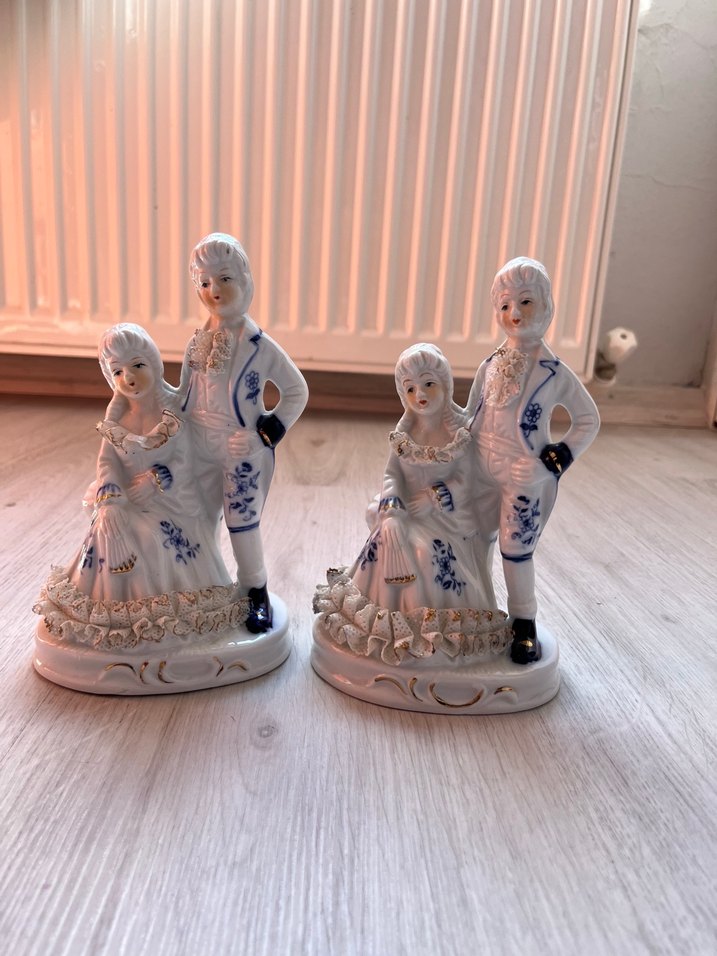Beyaz pastel renkte, detaylı çiçek desenleriyle süslenmiş vintage kıyafetli çift figürinleri. 17 cm , 2 adet fiyatı. Tekli de var sayfamda :)