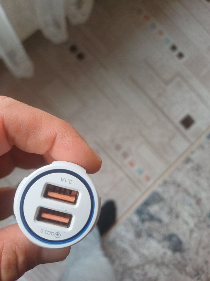 Çift USB çıkışlı, 3.1A hızlı şarj destekli beyaz telefon şarj cihazı. Kompakt ve kullanışlı.⚡ çalışıyor.. çizikler mevcuttur..
