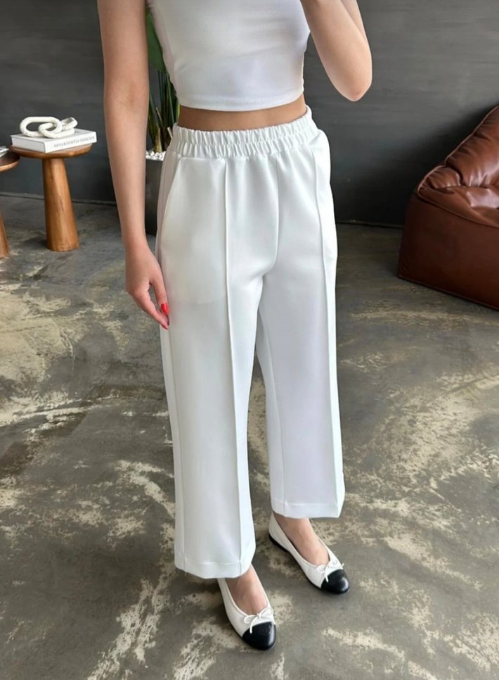 Beyaz midi uzunlukta, regular fit kumaş pantolon. Rahat kullanım için lastikli bel bandı bulunur. Minimalist ve şık tasarımıyla günlük kullanıma uygun. ✨S,M,L vedenleri mevcuttur