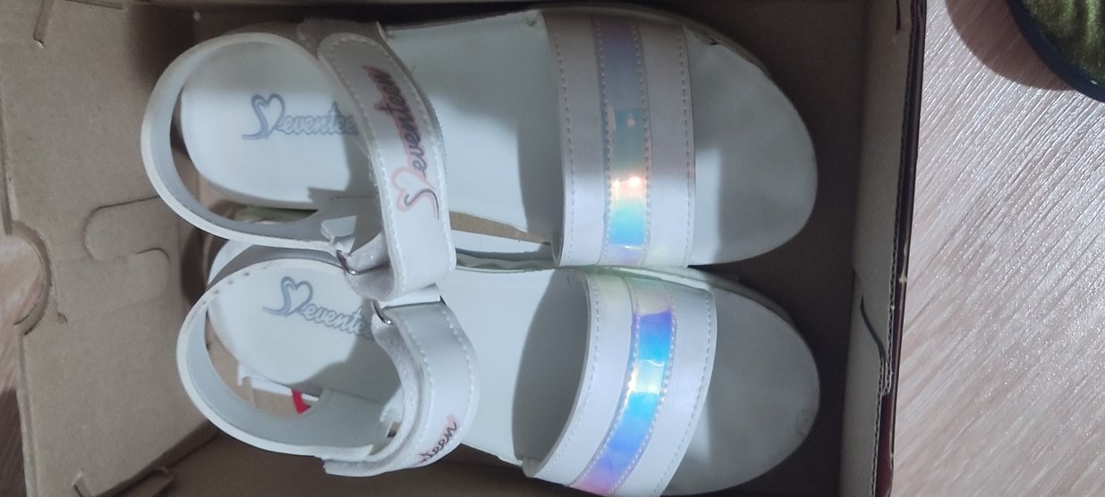 Cırt cırtlı beyaz kız sandaletleri, yansıtıcı şerit detaylı ve kauçuk malzemeden, sokak stili için uygundur. Sadece iki kez giyildi çok iyi durumda.