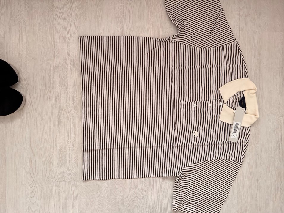 Beyaz Çizgili Kısa Kollu Polo Tişört