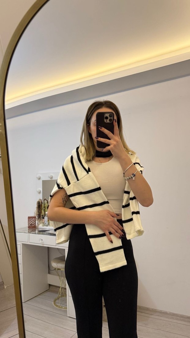 Beyaz Çizgili Örgü Kazak