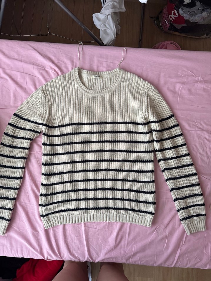 Beyaz Çizgili Triko Kadın Kazak