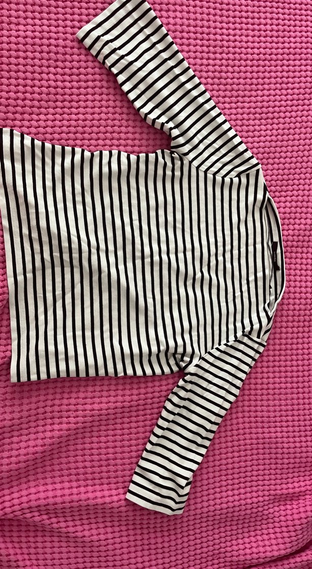 Beyaz Çizgili Uzun Kollu Bluz