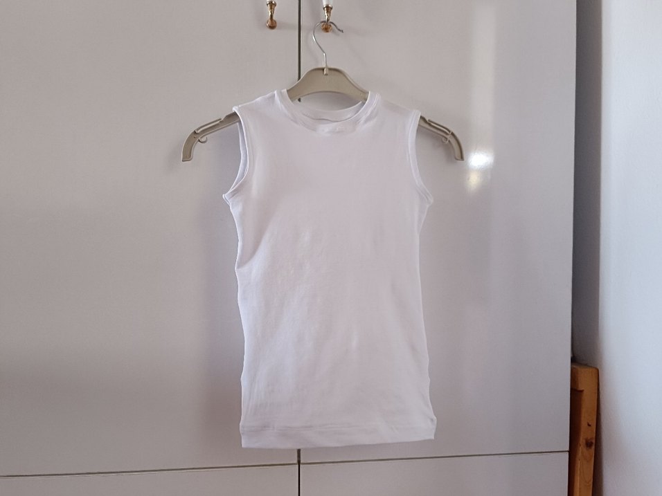 Çocuklar için beyaz, kolsuz atlet. Yumuşak kumaştan rahat ve sade tasarım sunar. Katmanlama için uygundur.