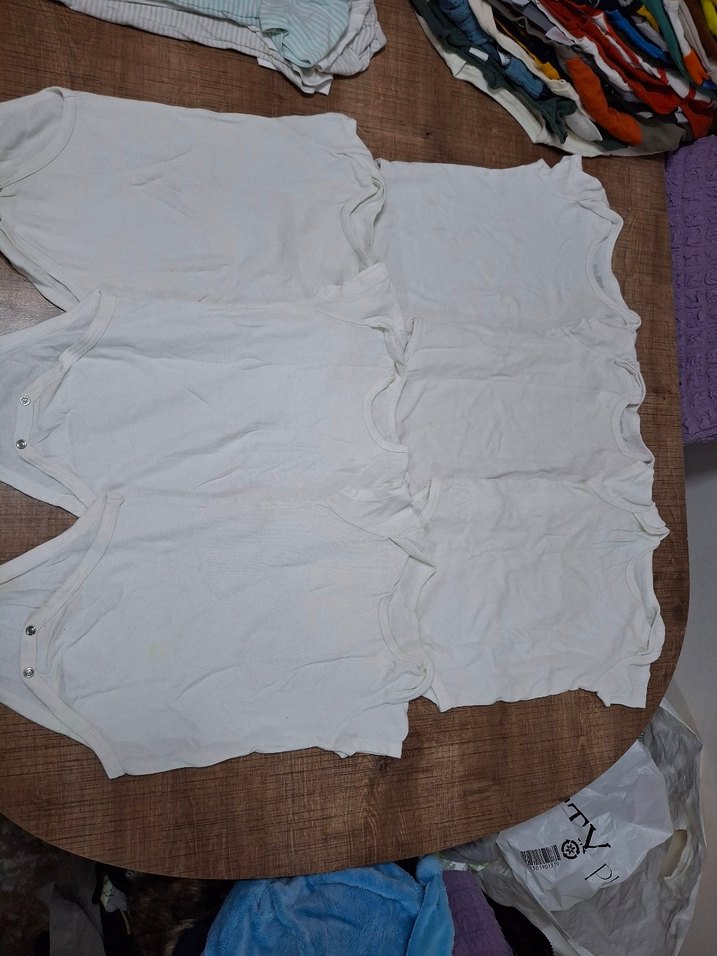 Yumuşak kumaştan yapılmış 5 adet beyaz çocuk atlet seti. Katmanlama için uygun, rahat ve sade tasarım.