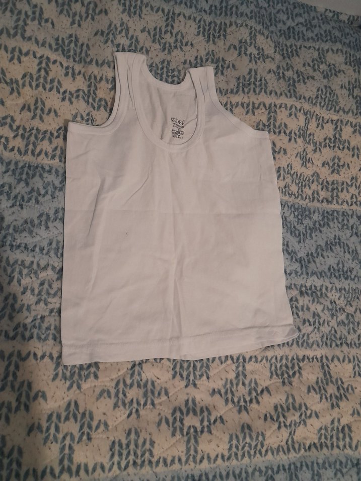 Yumuşak kumaştan, desensiz beyaz çocuk atlet, kolsuz ve rahat kullanım için uygundur.