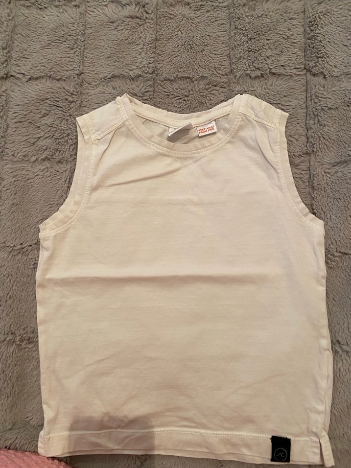 Yumuşak kumaştan yapılmış beyaz çocuk atlet, rahatlık ve sadelik sunar. Katmanlama için uygundur.