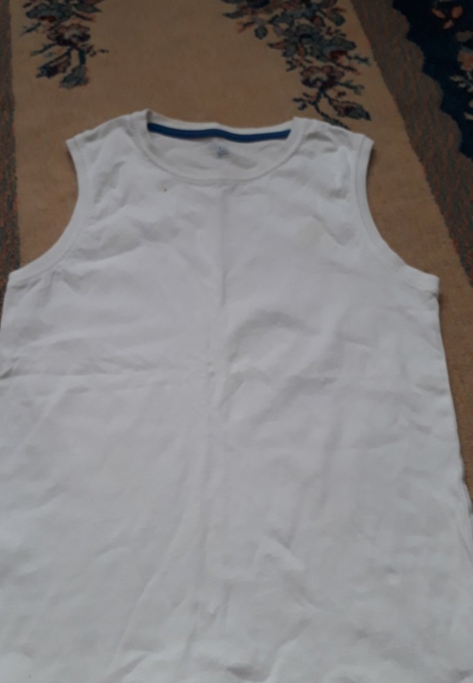 Yumuşak ve rahat kumaştan yapılmış beyaz çocuk atlet. Düz ve sade tasarım. Üst üste giymek için uygun.