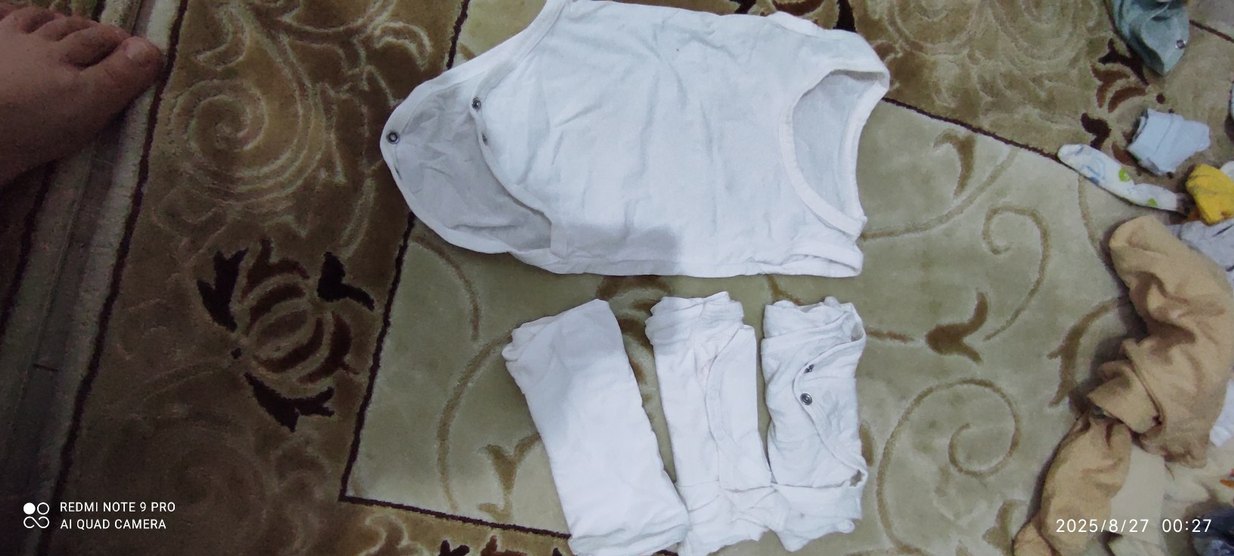 Çocuklar için yumuşak ve hafif beyaz atlet, rahatlık ve sadelik sunar. Üst üste giymek için uygundur. 5 adet 3 6 ay uyumlu atlet zıbın. az kullanıldı. temizdir. fotoda 4 adet birini sonradan buldum toplam 5 adet gönderilecektir