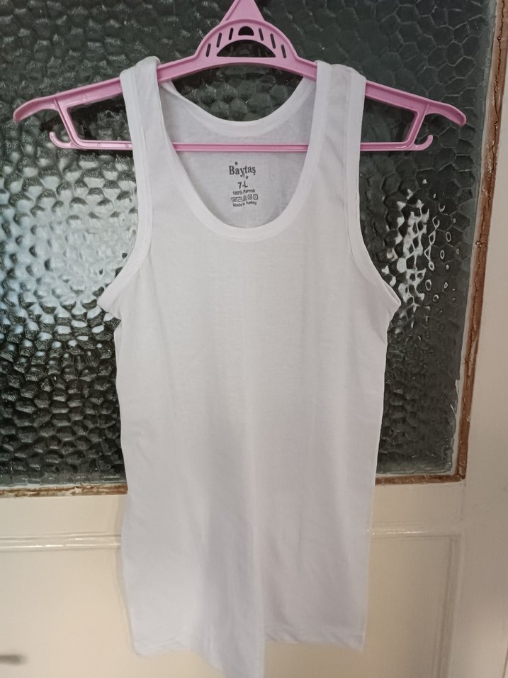 Çocuklar için beyaz, desensiz, yumuşak kumaştan üretilmiş, kolsuz atlet. toplu alım için sorun