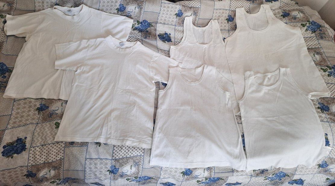 2 fanila 4 atlet lekeliler.bu ürün Mersin'de. Yumuşak kumaştan yapılmış beyaz çocuk atlet ve tişört seti, katmanlama için uygundur.