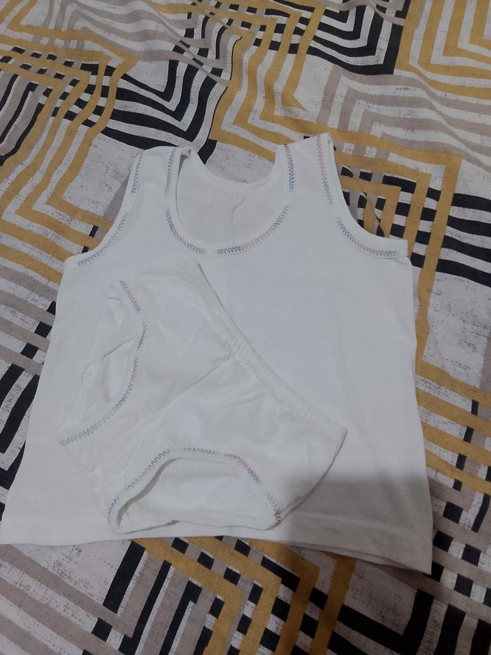 Yumuşak ve rahat kumaştan yapılmış beyaz çocuk atlet ve külot takımı. Açık renk dikiş detayları bulunur.