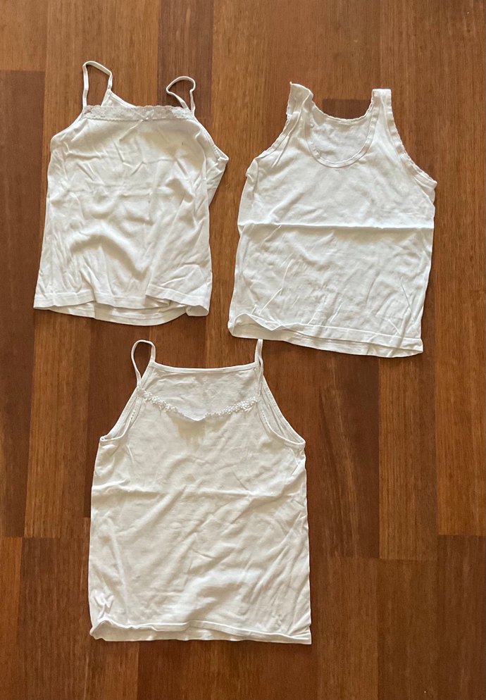 Yumuşak kumaştan yapılmış, beyaz renkte 3 adet çocuk atleti, askılı ve kolsuz modeller içerir.