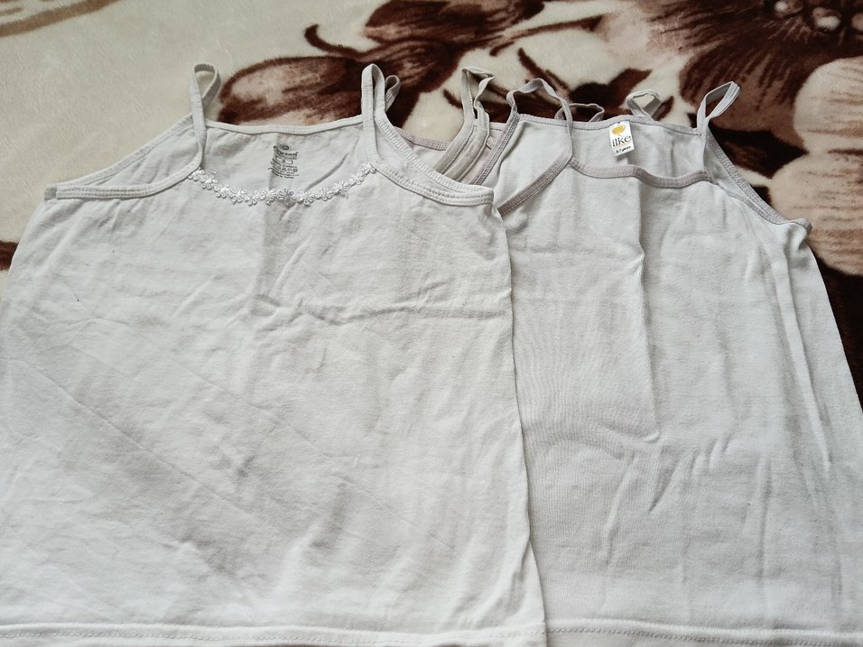 Gri ve beyaz tonlarında, desensiz çocuk atletleri. İnce askılı, yumuşak kumaştan üretilmiştir. 5 adet var 2 adette ekstra verılecek