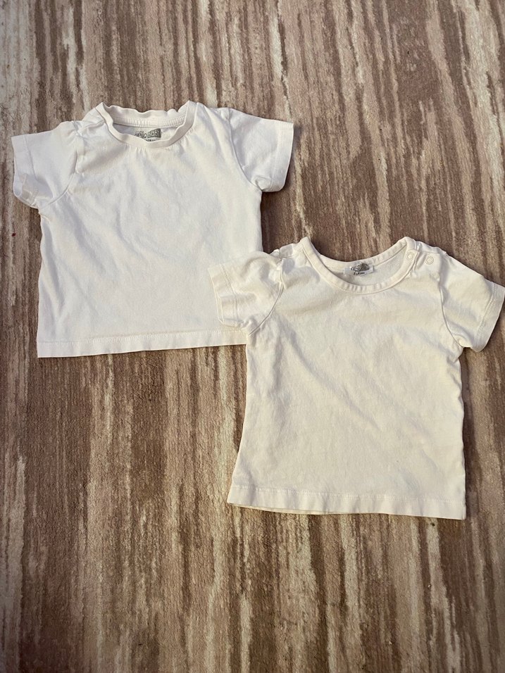 Yumuşak kumaştan yapılmış, desensiz beyaz çocuk tişörtleri.