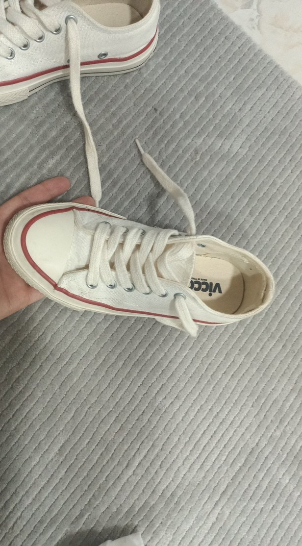 Beyaz kadın spor ayakkabısı, bağcıklı, kauçuk tabanlı ve sade tasarımlı, günlük ve spor kullanım için uygundur. 1 kere giyildi . vicco marka 33 numara