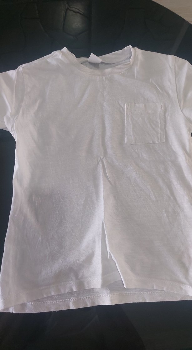 Yumuşak kumaştan, cepli beyaz çocuk iç tişörtü. Düz ve açık renkli, katmanlama için uygun.