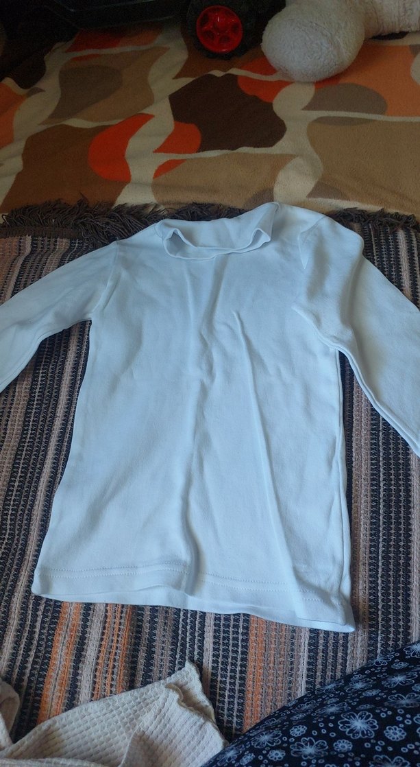 Yumuşak ve rahat kumaştan yapılmış, düz beyaz uzun kollu çocuk içliği. Serin havalar için katman olarak kullanılabilir.