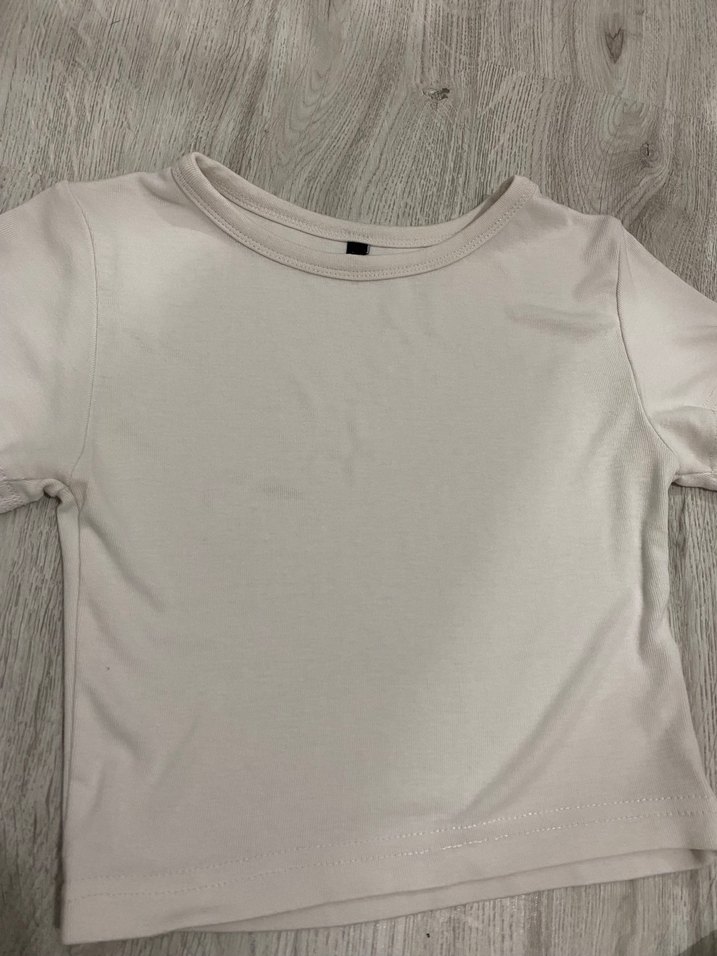 Yuvarlak yakalı, rahat kumaştan yapılmış düz beyaz çocuk içliği. Katmanlama için uygundur.