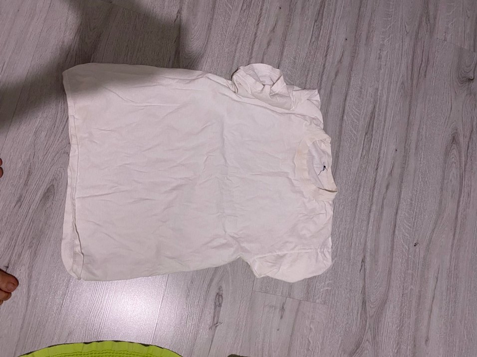 Düz beyaz, yumuşak kumaşlı çocuk içliği. Yuvarlak yaka ve rahat kesime sahiptir.