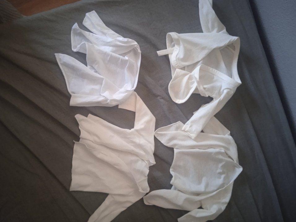 Yumuşak kumaştan yapılmış, sade beyaz çocuk içlik takımıdır. Uzun kollu ve katlama için uygundur.