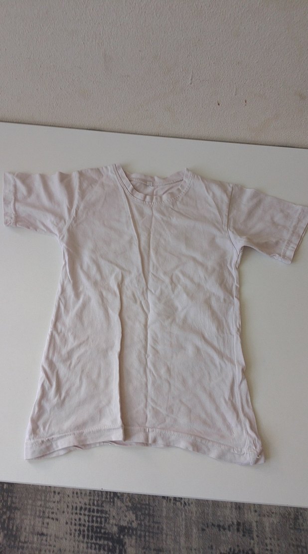 Pastel beyaz renkte, düz desenli, kısa kollu çocuk içlik tişörtü. Yumuşak ve rahat kumaştan üretilmiştir.