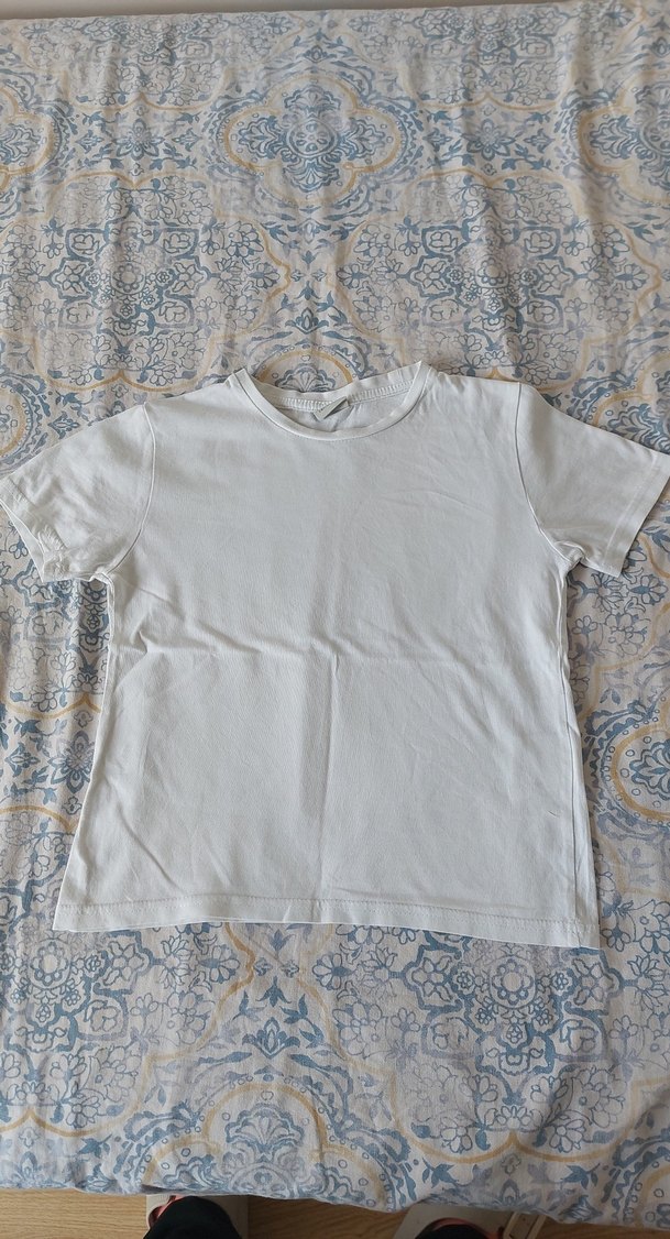 Beyaz, desensiz çocuk içlik tişörtü, kısa kollu ve yumuşak kumaştan üretilmiştir.